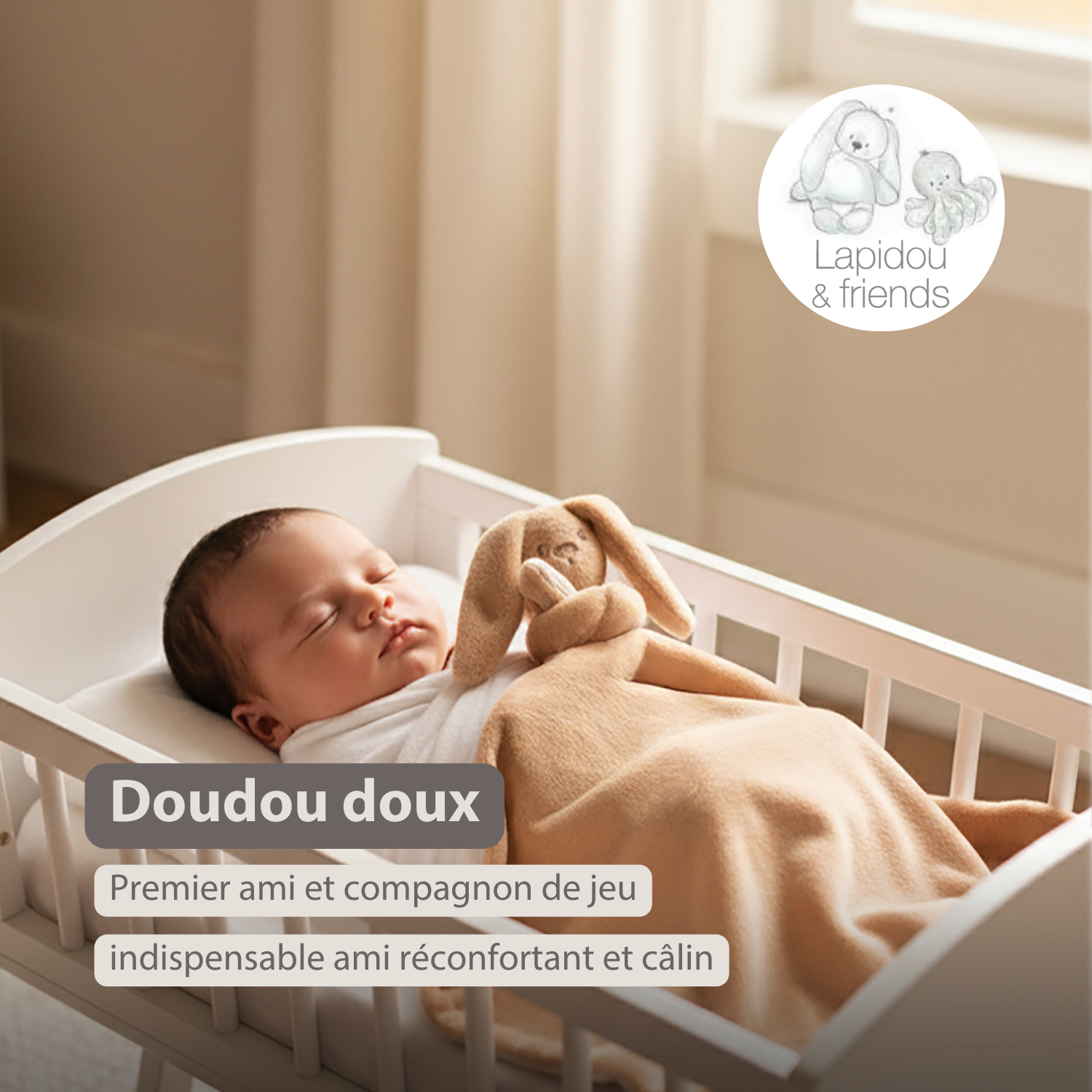 Bienvenue dans l’univers doux et espiègle de Lapidou, une collection tendre de Nattou pleine de petits lapins. Cette collection offre tout ce qu’il faut pour que les tout-petits se sentent en sécurité et aimés. Des adorables peluches et doudous aux couvertures moelleuses – chaque pièce apporte chaleur, réconfort et joie. Que vous cherchiez un petit compagnon pour consoler ou une couverture douillette pour le lit – Lapidou est parfait pour câliner, jouer et s’endormir paisiblement. Apportez une touche de magie et de plaisir à câliner dans le quotidien de votre enfant avec Lapidou : doux, adorable et toujours prêt pour un câlin.