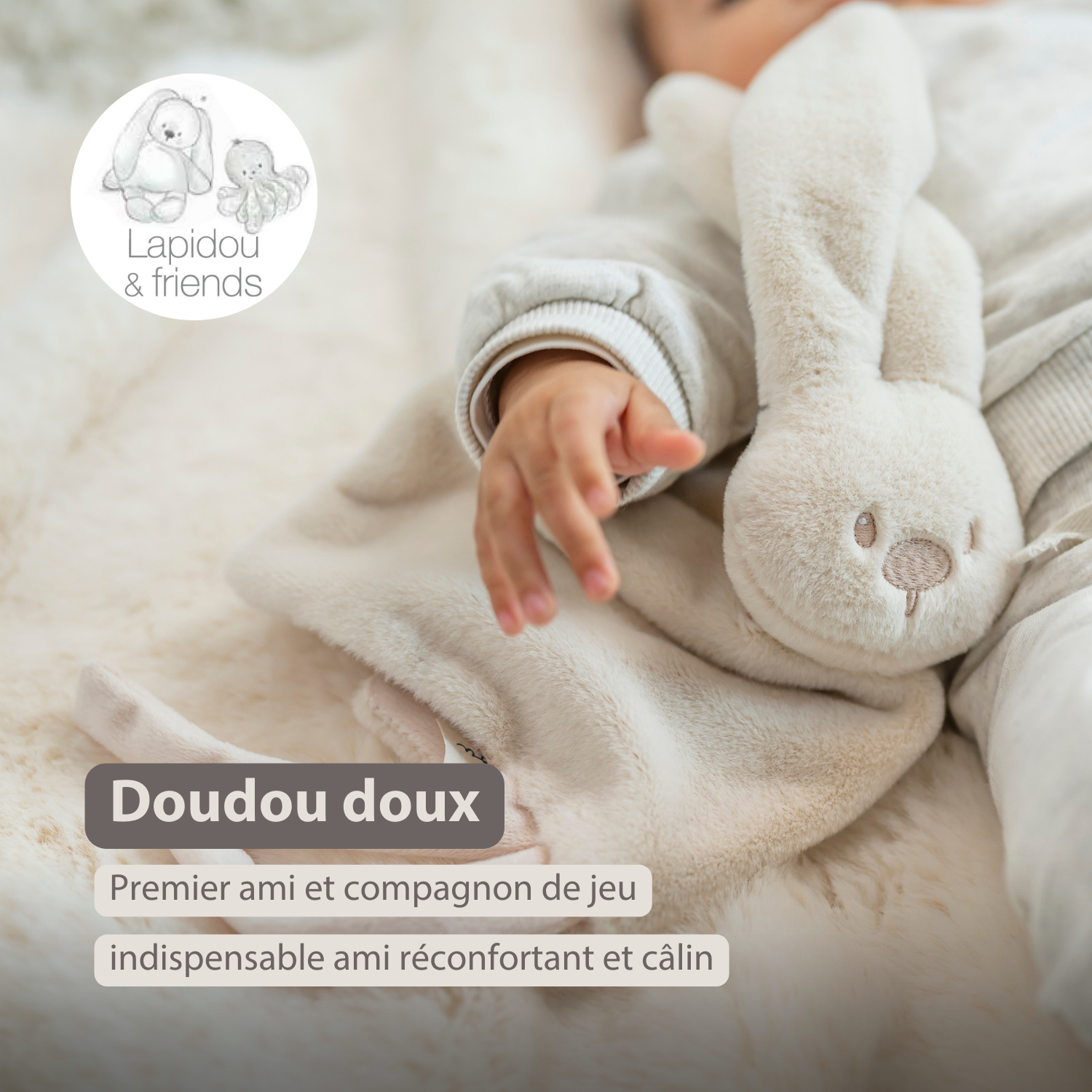 Lapidou Doudou bébé – 27 x 27 cm – Lapin doudou – Couleur sable