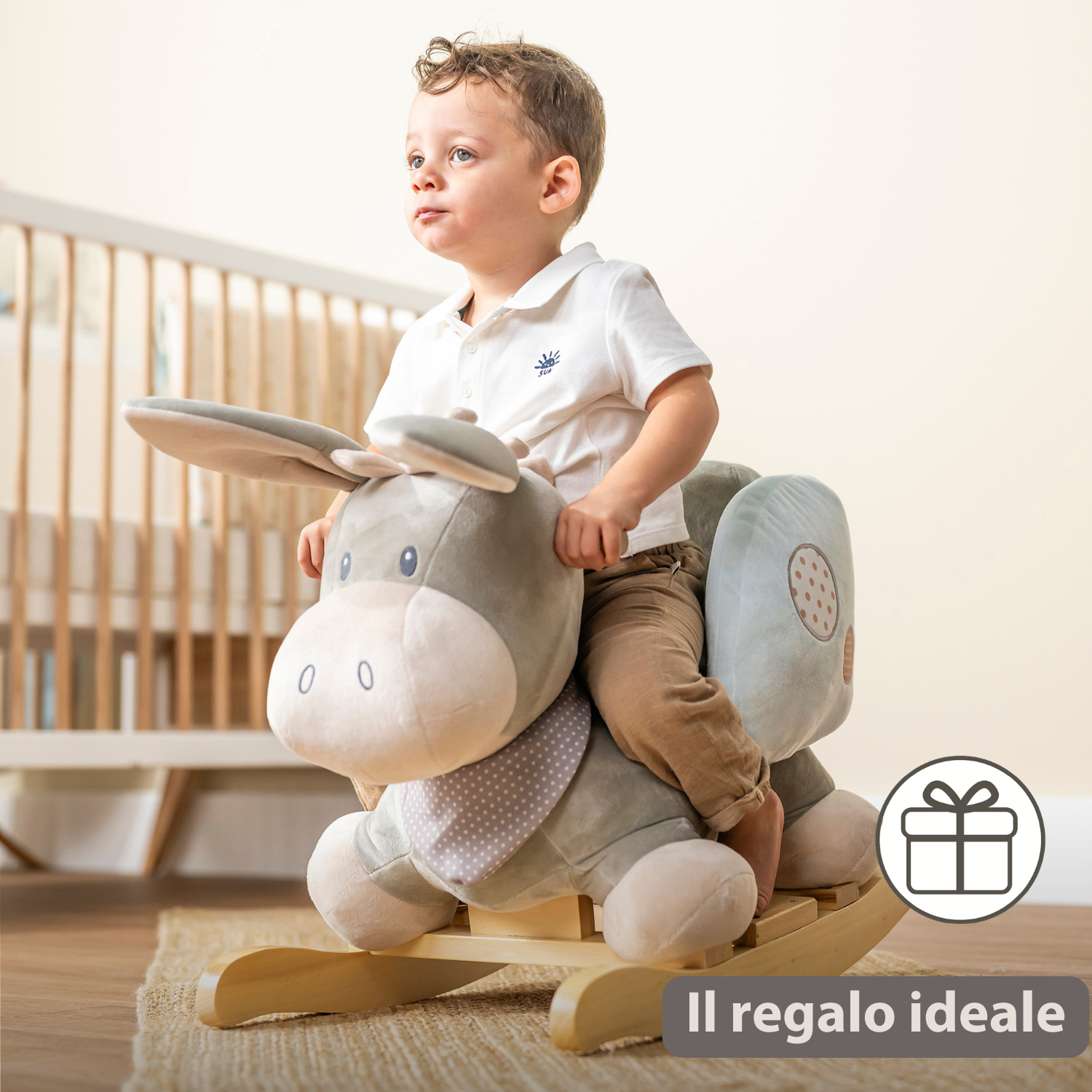 - Cavallo a dondolo in peluche a forma di asino