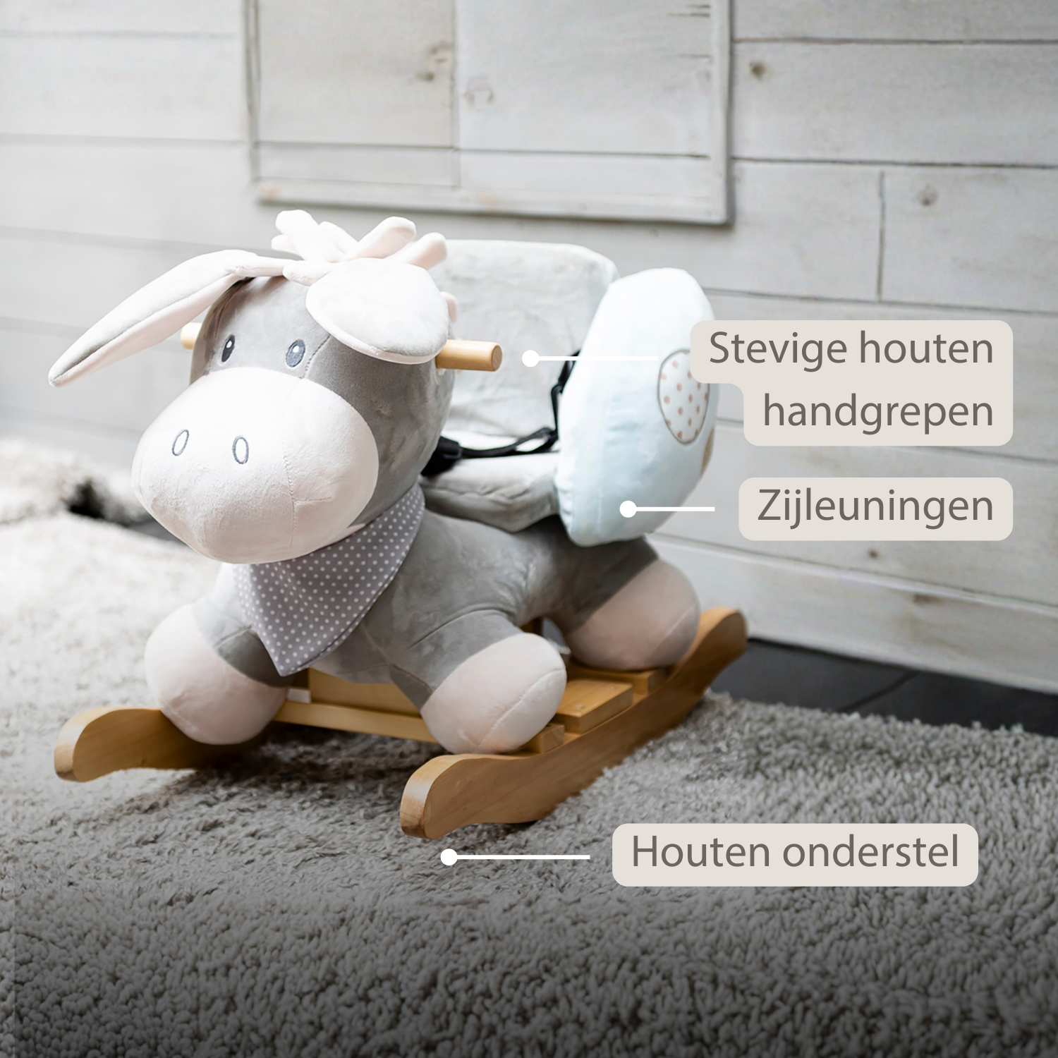 Cappuccino Schommelpaard Ezel - Schommeldier - Grijs en Blauw