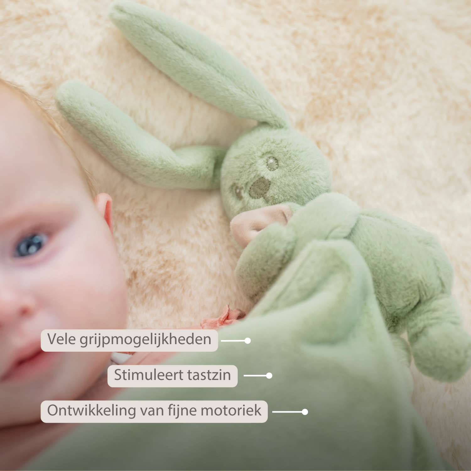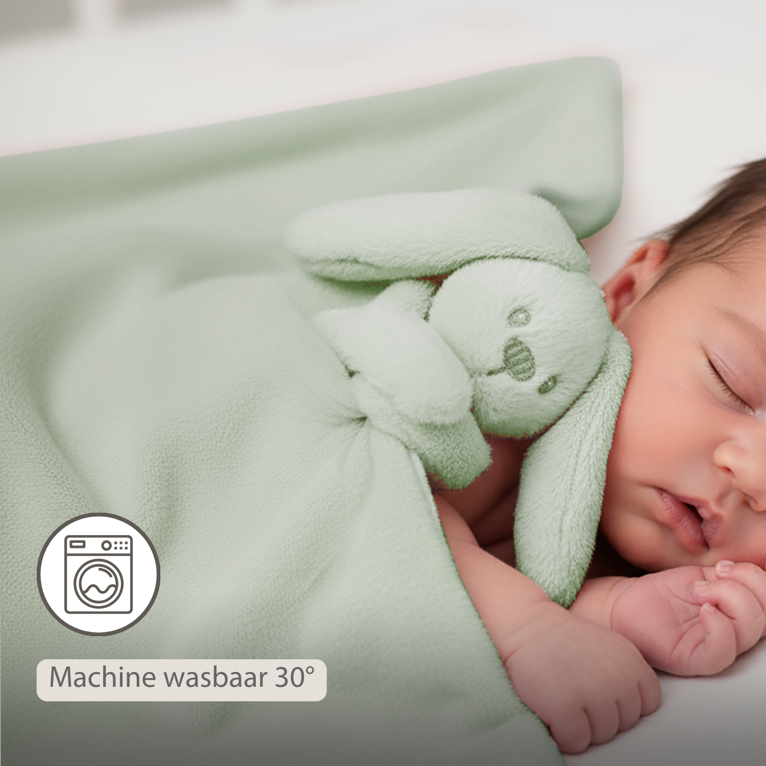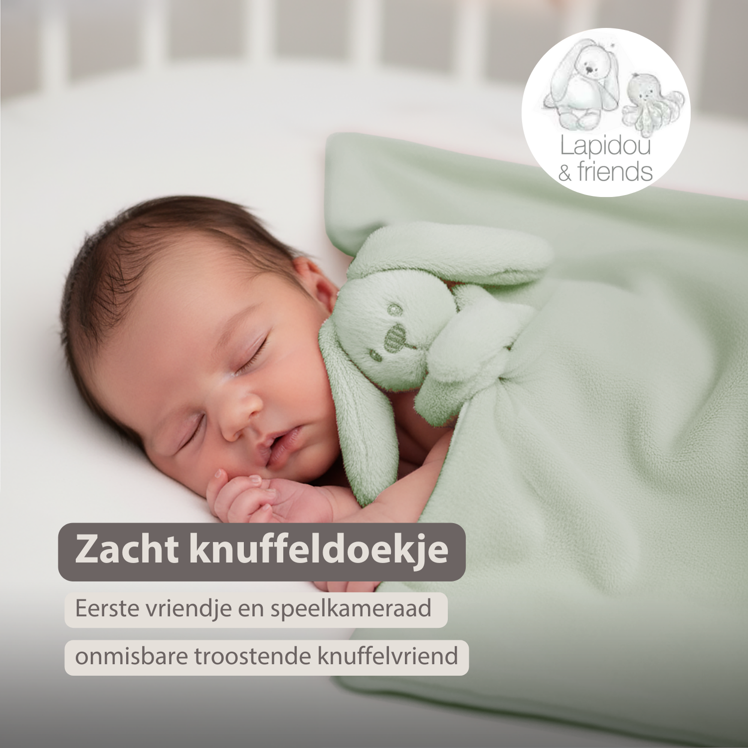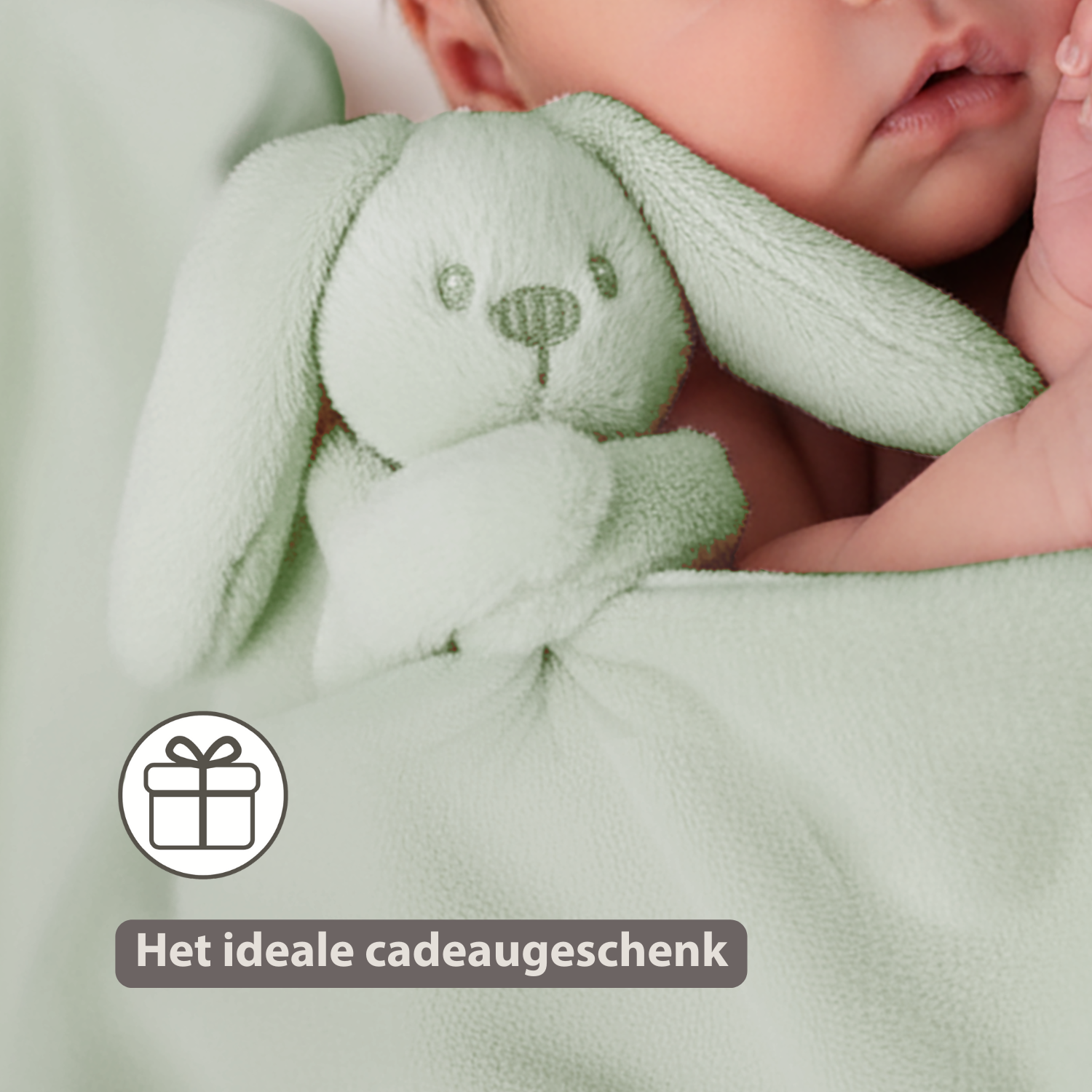 Lapidou Baby Dekentje met Knuffel - 50 x 50 cm - Doudou Konijn - Lindengroen