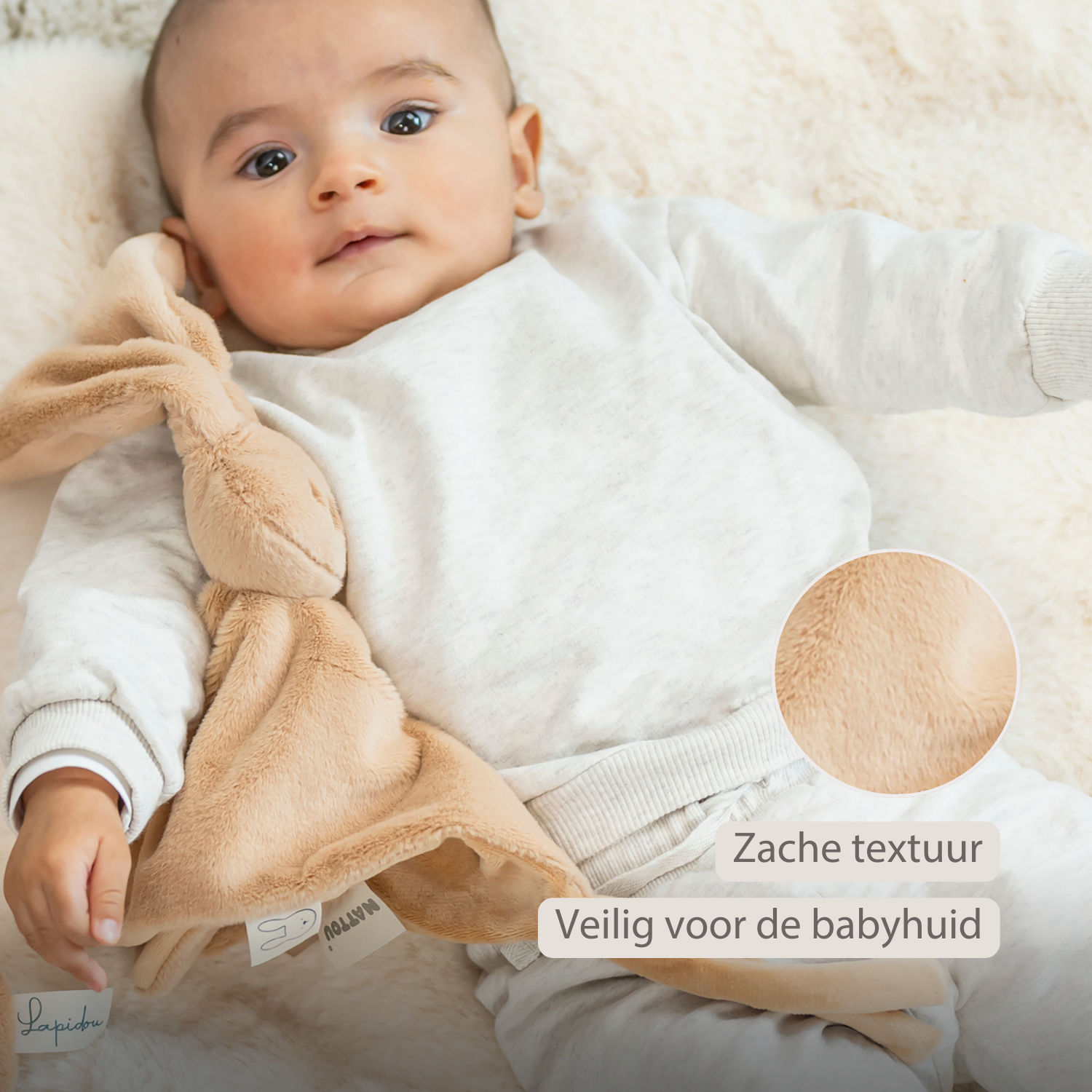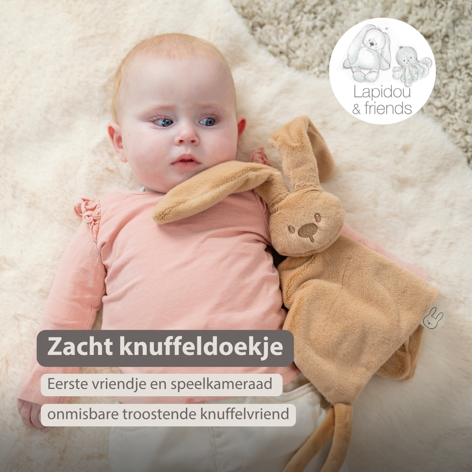 Lapidou Baby Knuffeldoekje - 27 x 27 cm - Doudou Konijn - Warm Beige