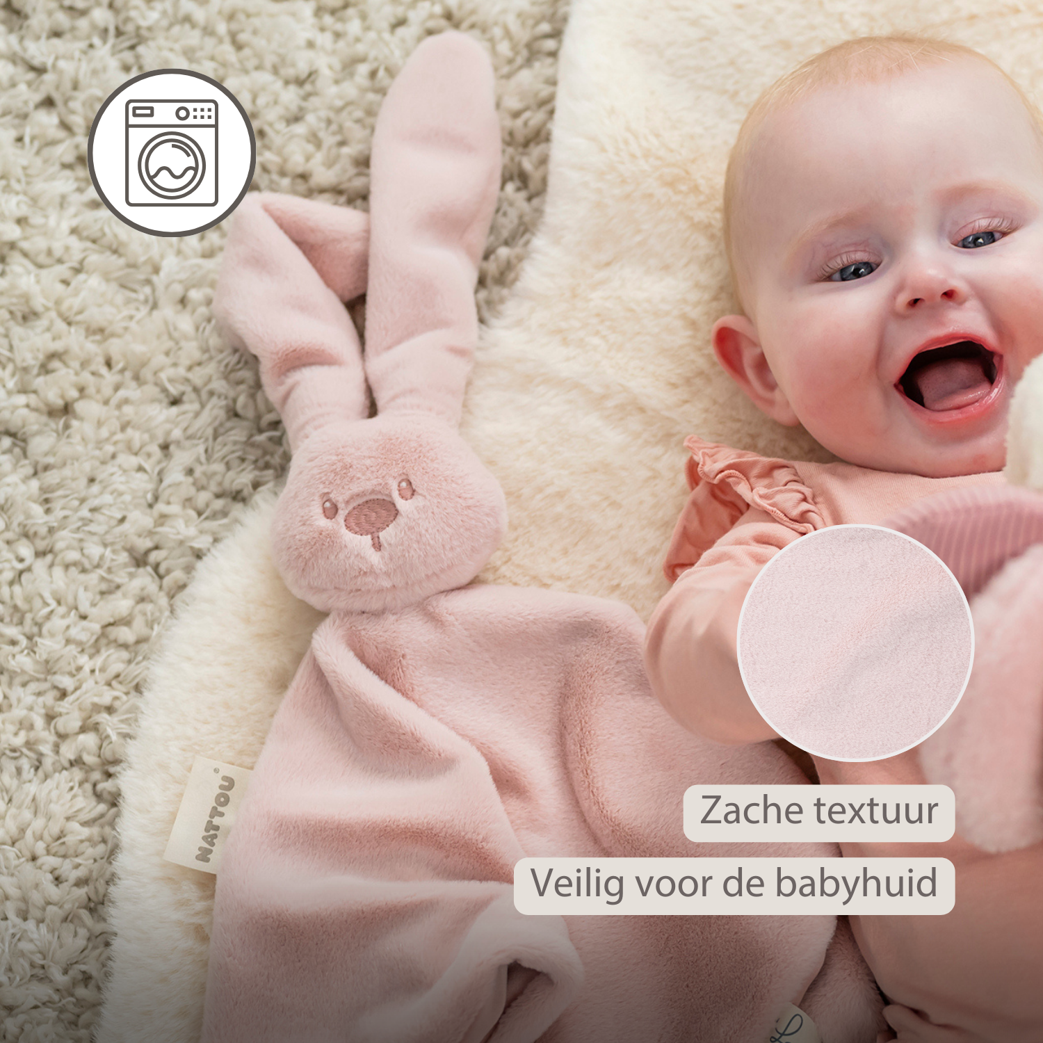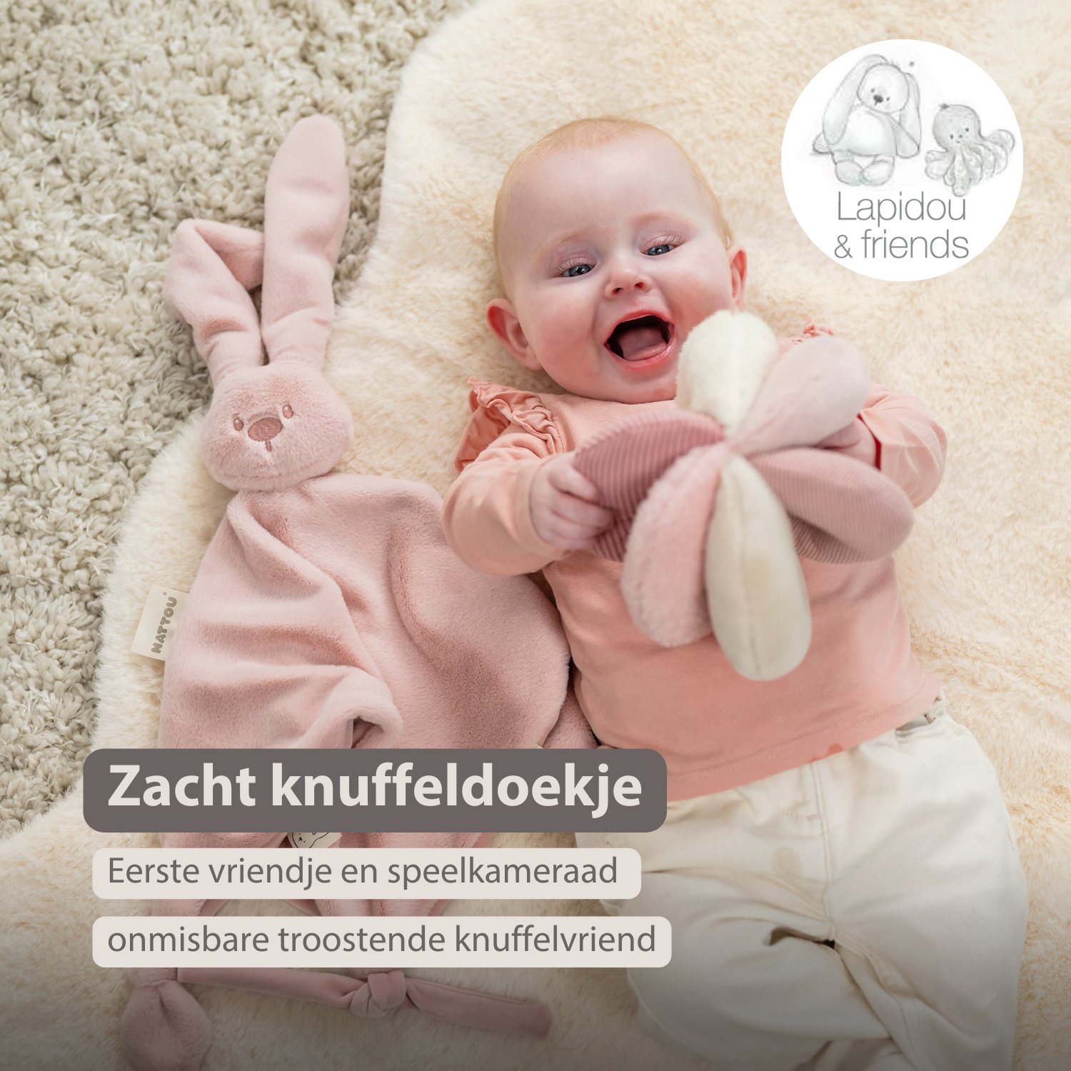 Lapidou Baby Knuffeldoekje - 65 x 40 cm - Doudou Konijn - Poederroze