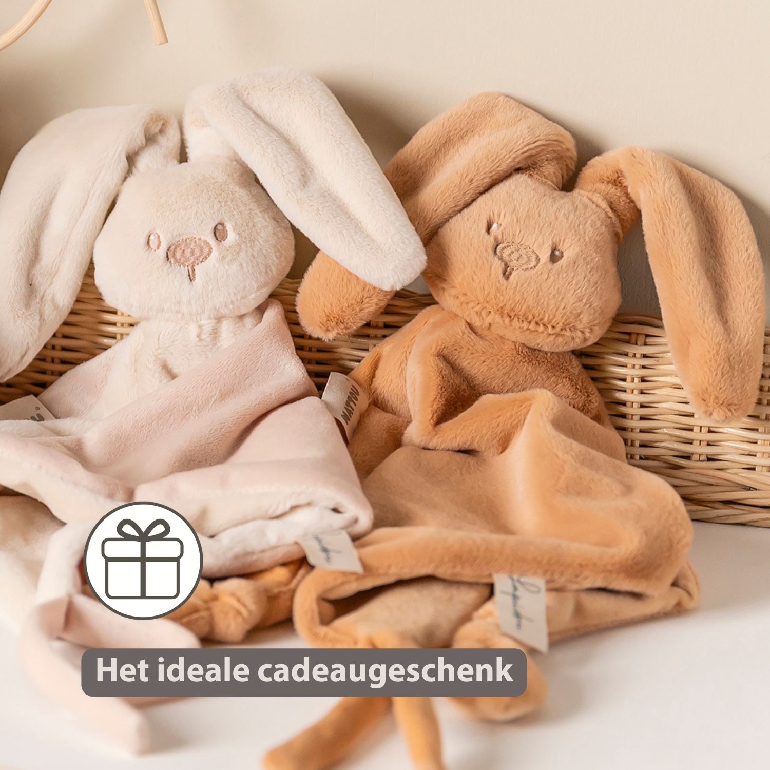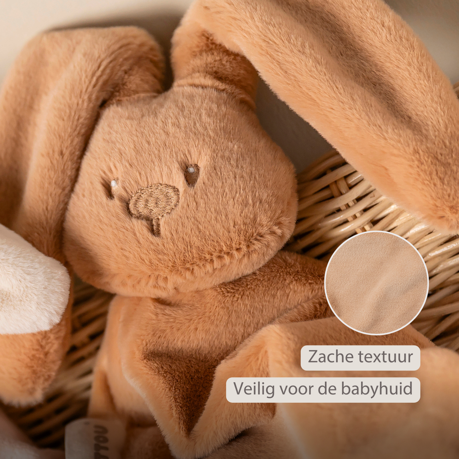 Dit maxi warm beige knuffeldoekje van Nattou in de vorm van een schattig konijntje wordt vanaf de geboorte een onafscheidelijke vriend van je kindje. De combinatie van zachte materialen in verschillende kleuren voelt heerlijk knuffelbaar aan en geeft je baby een gevoel van geborgenheid en rust. Dankzij het royale formaat, de vele grijpmogelijkheden en de extra details zoals labeltjes en knoopjes stimuleert dit knuffeldoekje de tastzin en de fijne motoriek van kleine handjes. Het konijntje biedt troost tijdens moeilijke momenten en zorgt voor rust onderweg of bij het slapengaan. Met de twee praktische koordjes bevestig je eenvoudig een speen, zodat deze altijd binnen handbereik is. Een lieve doudou die zowel functioneel is als een prachtig babycadeau.