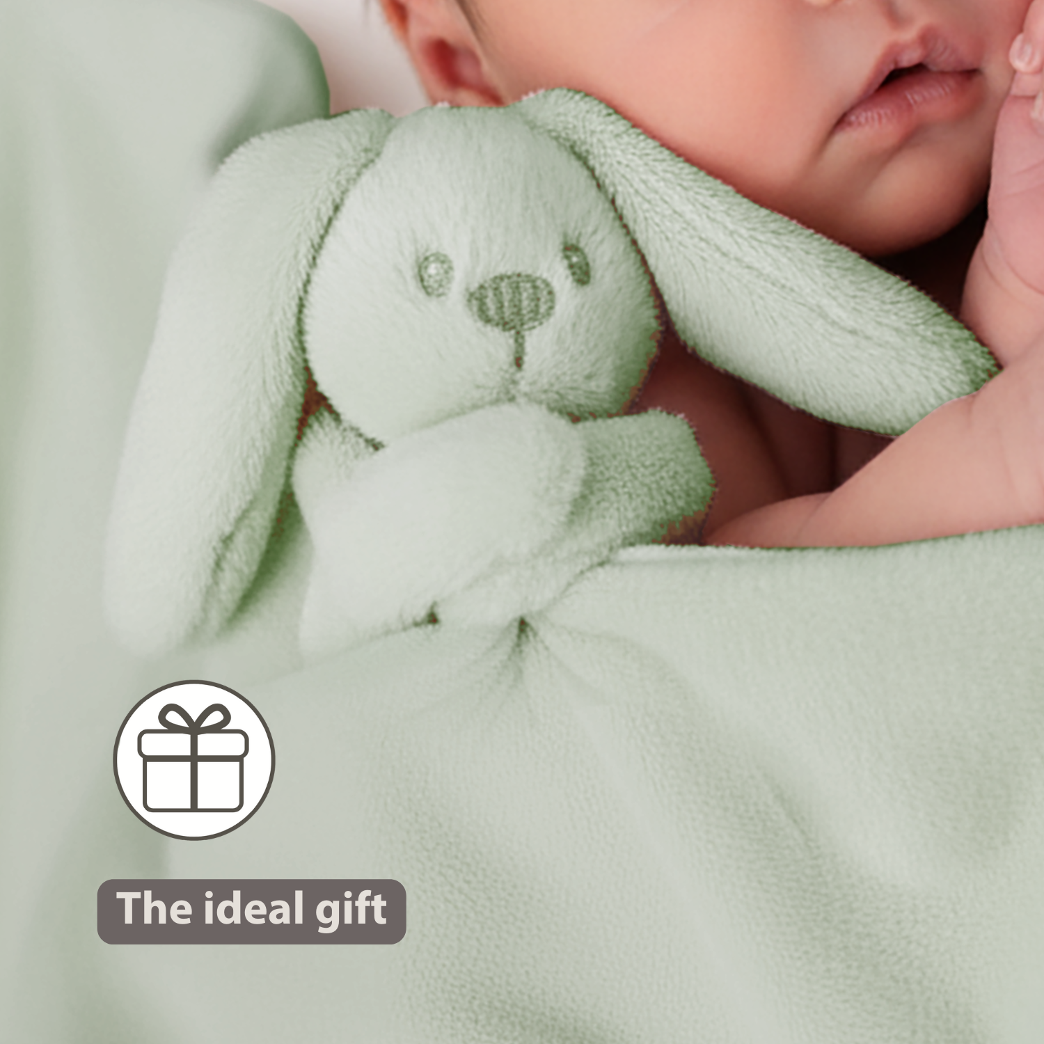 Lapidou Baby Blanket with Plush - 50 x 50 cm - Doudou Rabbit - Linden Green